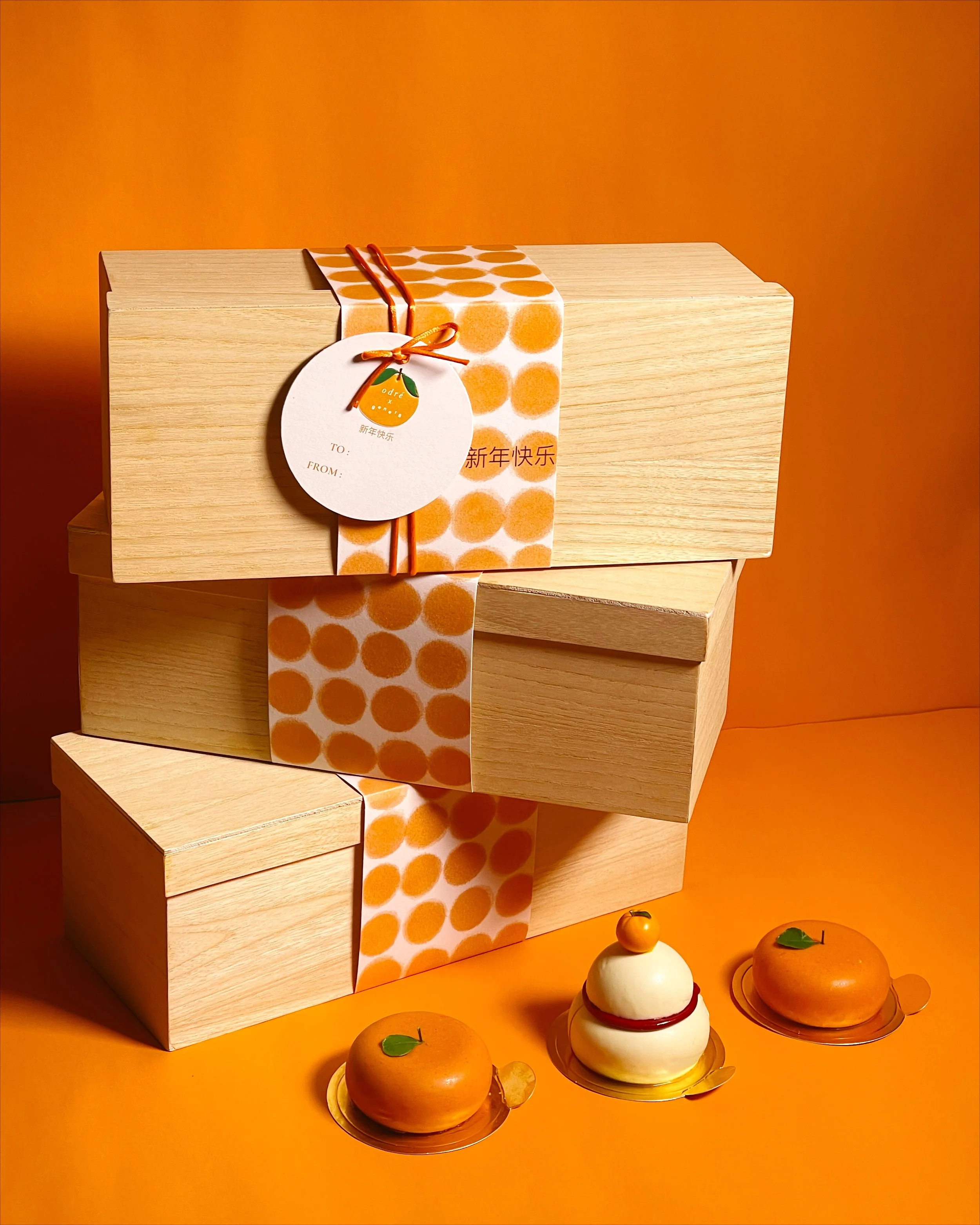 Drawing inspiration from Japanese tradition, the team crafted mini Kagami Mochi, symbolizing good health and fortune for the New Year. In Chinese culture, oranges and tangerines are auspicious symbols, representing wealth and prosperity. Therefore, the collaboration also featured Orange Jelly Mousse desserts, reflecting the vibrant colors and symbolic significance of these fruits.